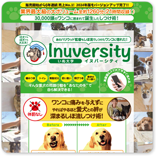 愛犬の問題行動に悩んでいる方、または信頼関係をもっと深めたいと感じている方は、ぜひ1括~24分割 Inuversity(イヌバーシティ) ~いぬ大学~ 犬のしつけ教材をチェックしてみてください。今すぐに始められるしつけの第一歩を踏み出してみませんか?